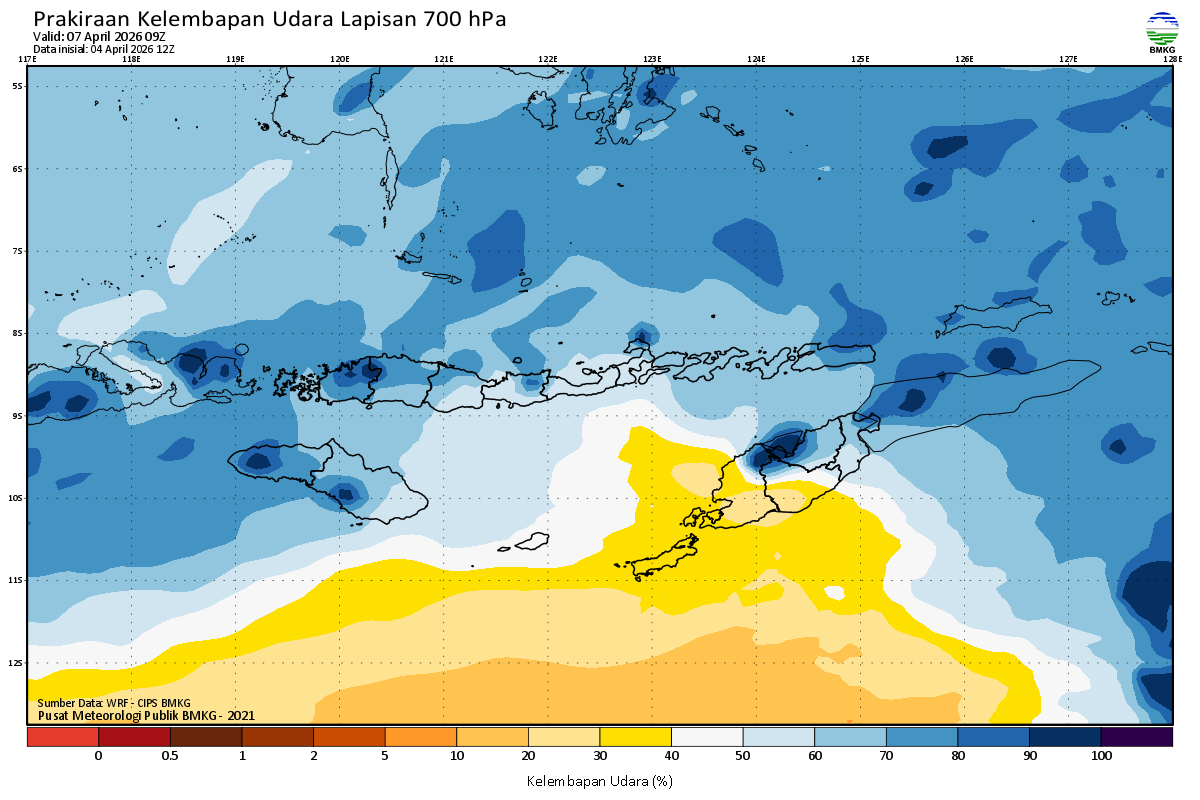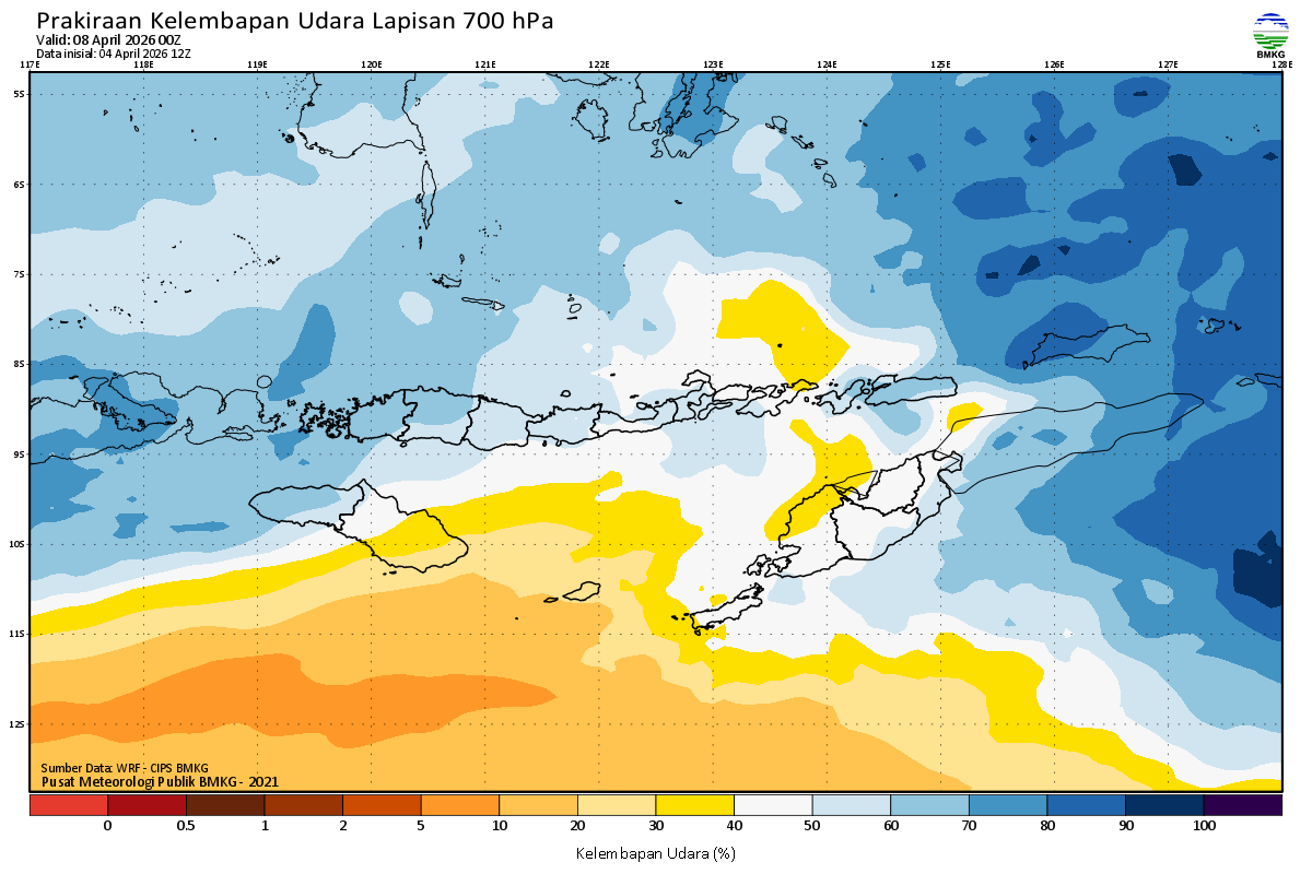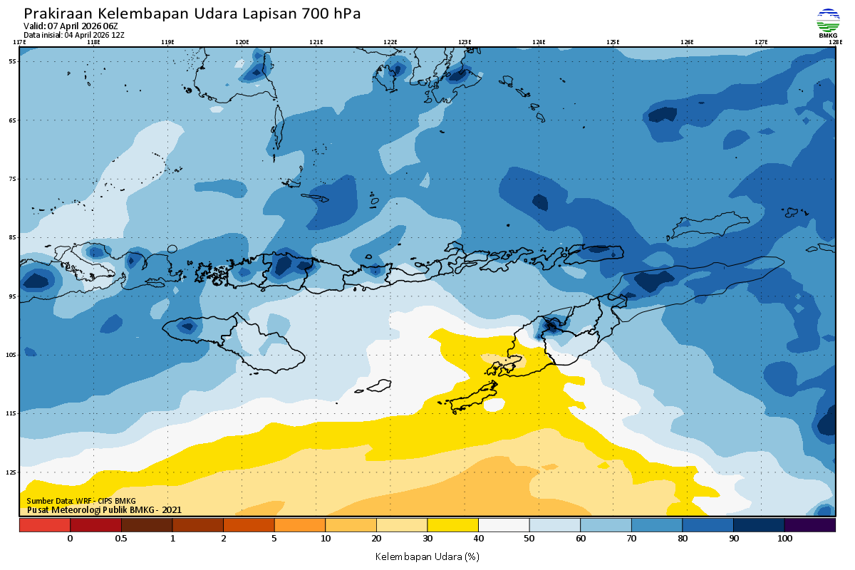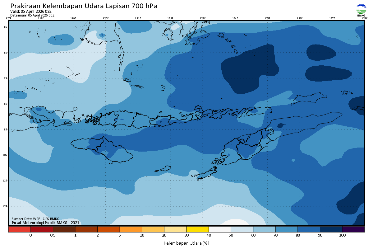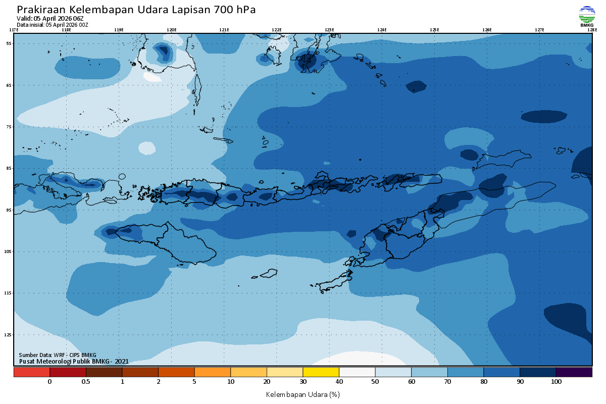 Prediksi Kelembapan 700 hPa NTT