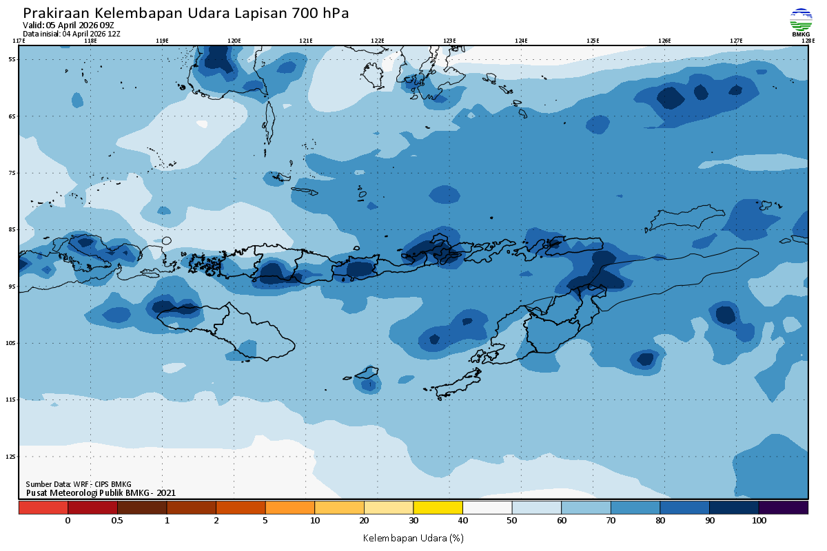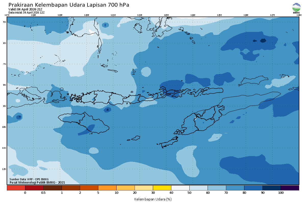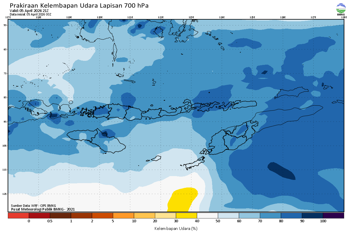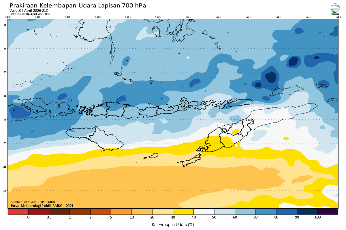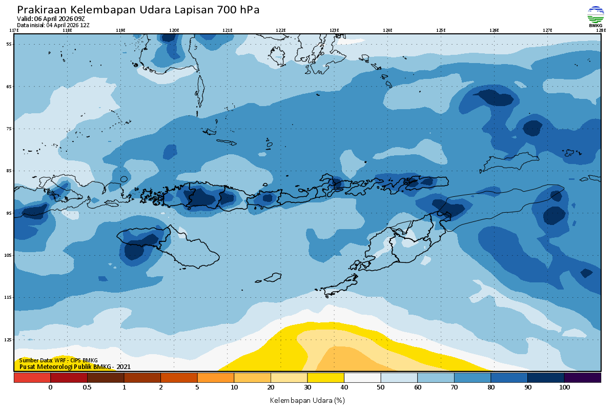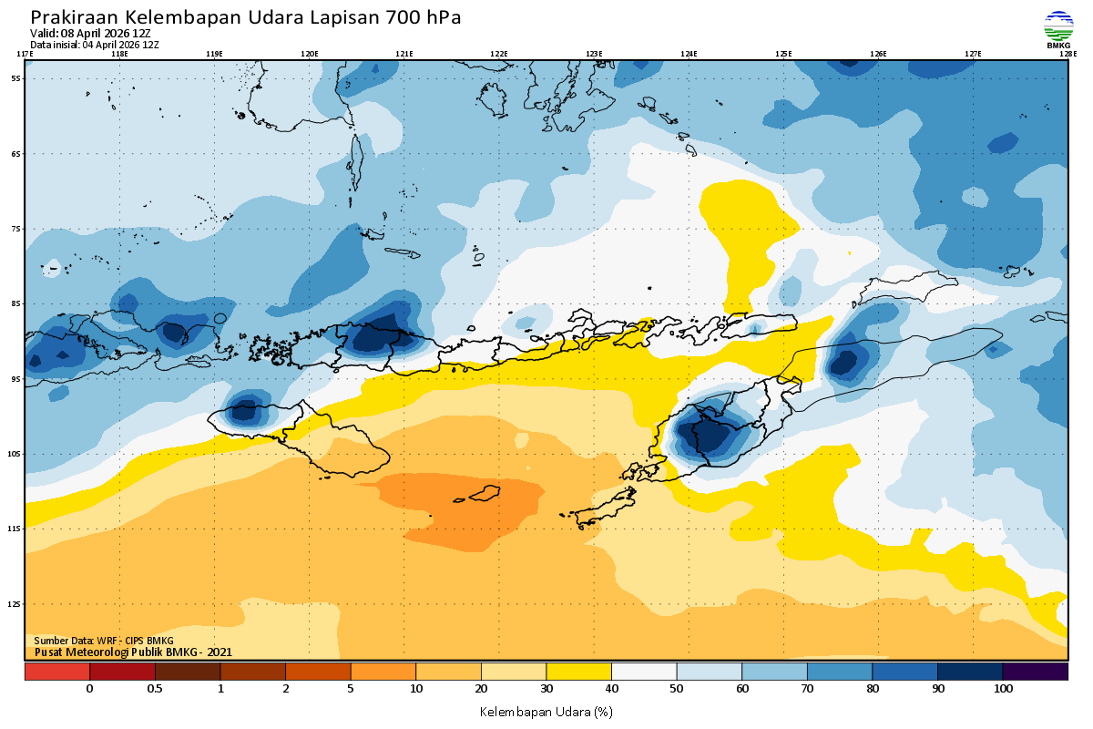 Prediksi Kelembapan 700 hPa NTT