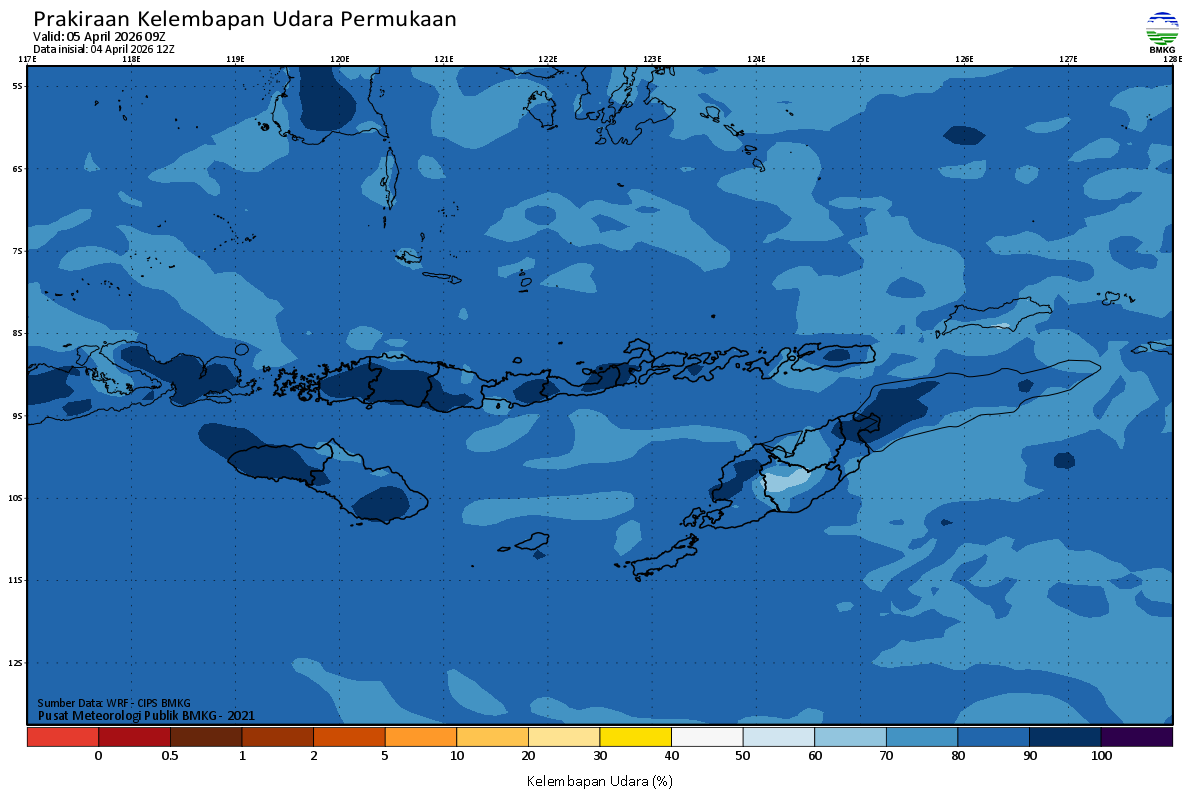Prediksi Suhu Titik Embun 600 hPa NTT